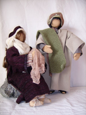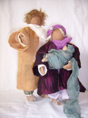 Maria und Josef mit Jesuskind in Krippe (orange)